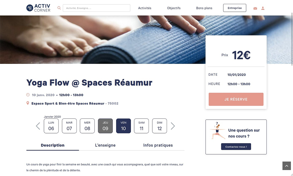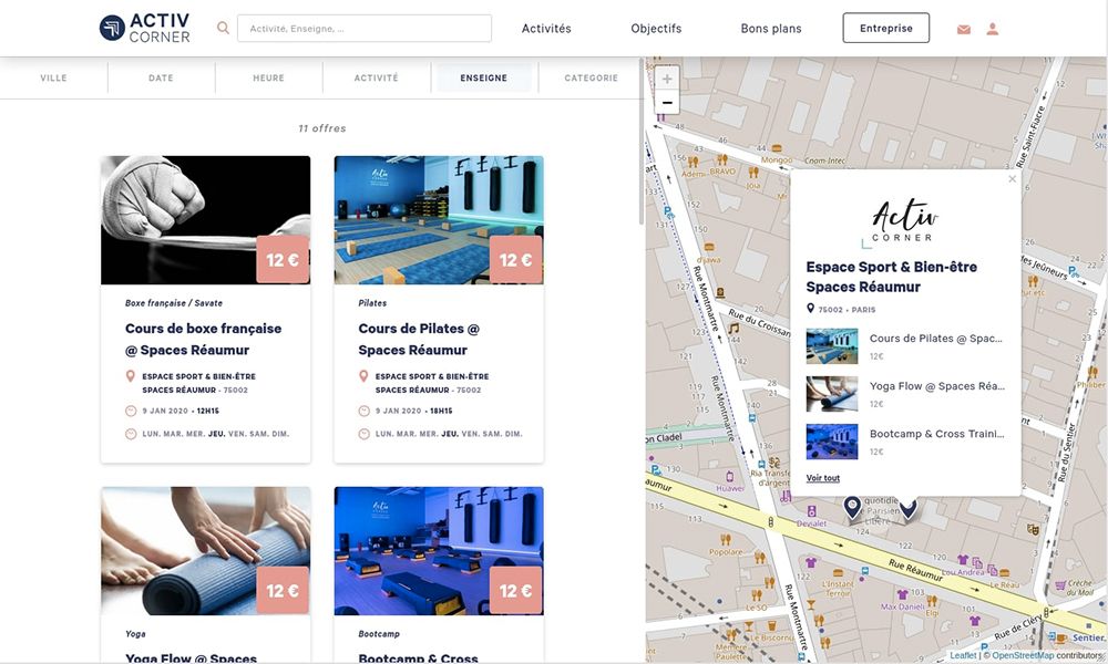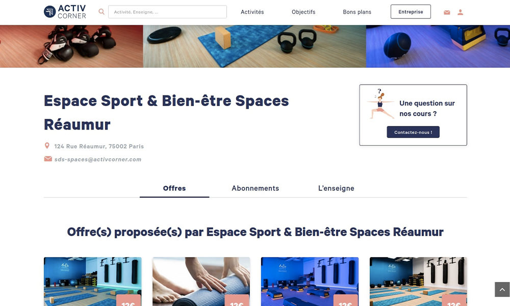 ActivCorner, the first French sport and wellness marketplace, brings more than 500 partners (gym, studios, theaters,…) together and offers thousands of on-demand activities all over France. In its lists of thousands of users, multiple prestigious names have been added, such as: Google, L’Oreal, Axa and Regus. What about ActivCorner and Sutunam? A real partnership!