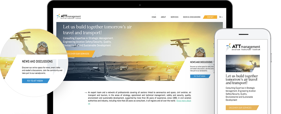 ATT management is a consulting company in air safety that wanted to set up a showcase site in order to communicate about the company, the services proposed, its study cases and to be contacted. The ATT website is not just a nice showcase for the company but a real prospecting tool generating contact and improving its network performance.